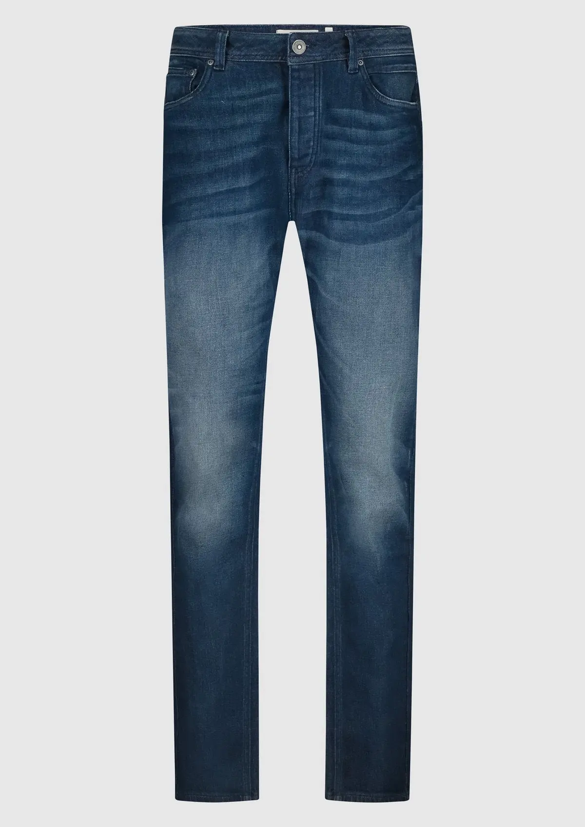 De Connor is onze regular fit jeans voor heren, de broek heeft een rechte fit met een 5-pocket ontwerp en een gulp met knoopsluiting. Uitgevoerd in een vintage donkerblauwe denim met een witte fade.