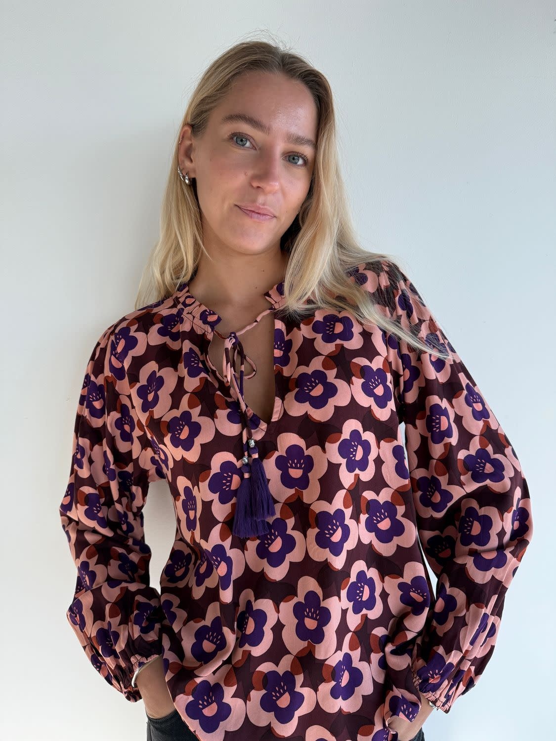 Deze Joy Blouse in jaren 70 print! Geweldig om te dragen, gemaakt van 100% viscose.