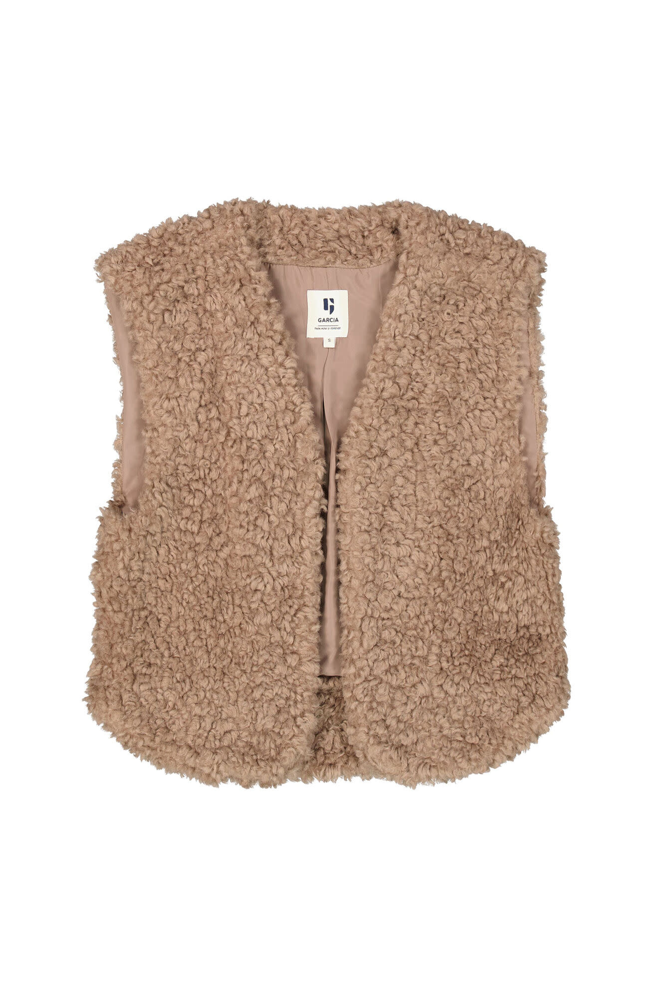 Gilet van zachte teddy. Deze gilet heeft een open voorkant, zonder sluiting, en een regular fit. Dit item is gemaakt van 100% polyester, wat zorgt voor een zachte en comfortabele draagervaring. De teddy stof biedt niet alleen warmte, maar ook een modieuze uitstraling die perfect is voor de herfst en winter.