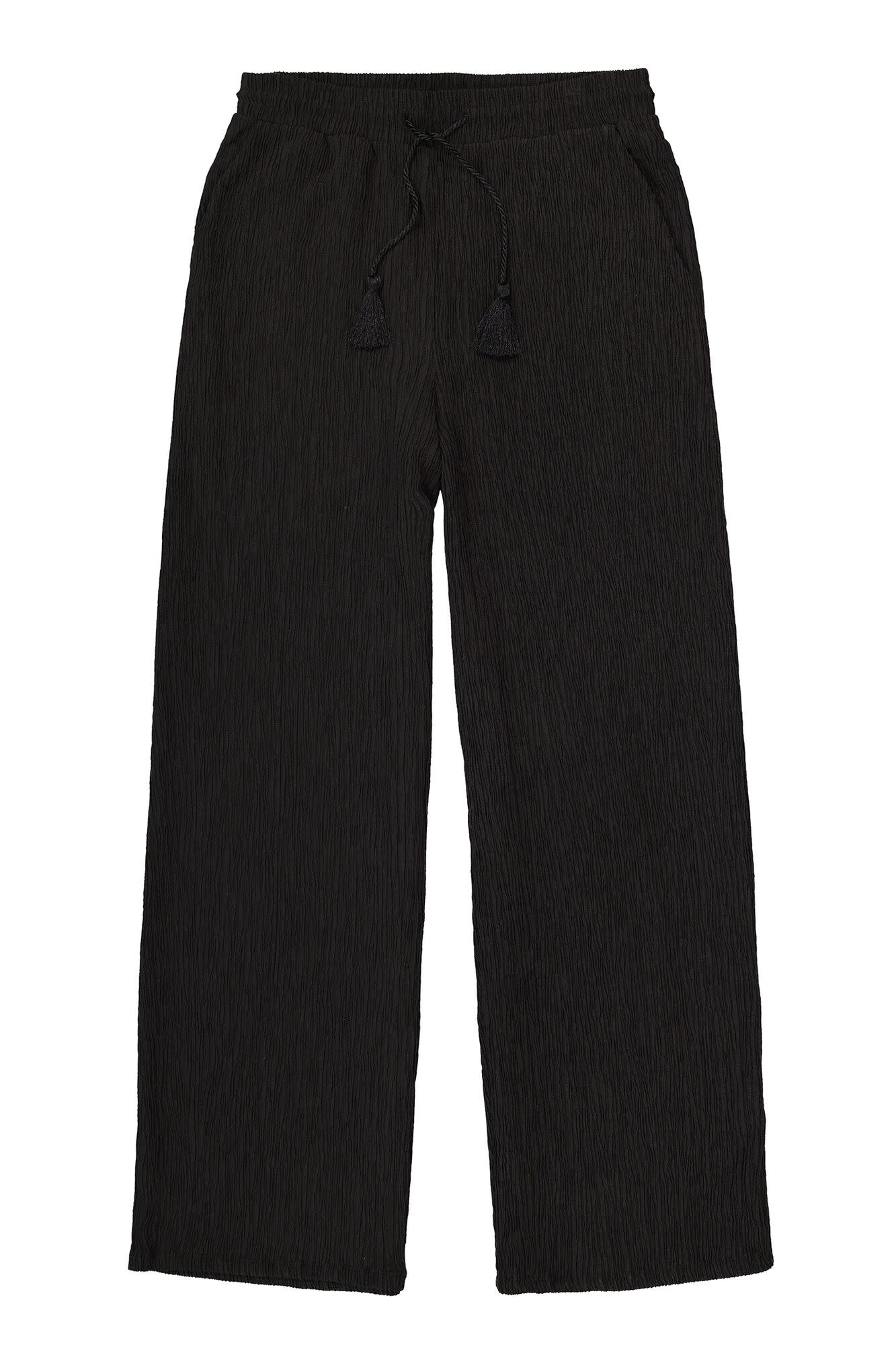 Stijlvolle broek met een hoge taille en een wijdvallende pasvorm. Deze broek heeft een elastische tailleband en biedt optimaal comfort voor elke gelegenheid. Dit item is gemaakt van 66% Lyocell, 32% Polyester en 2% Elastaan, wat zorgt voor een zachte en ademende stof met een crinkle-effect.