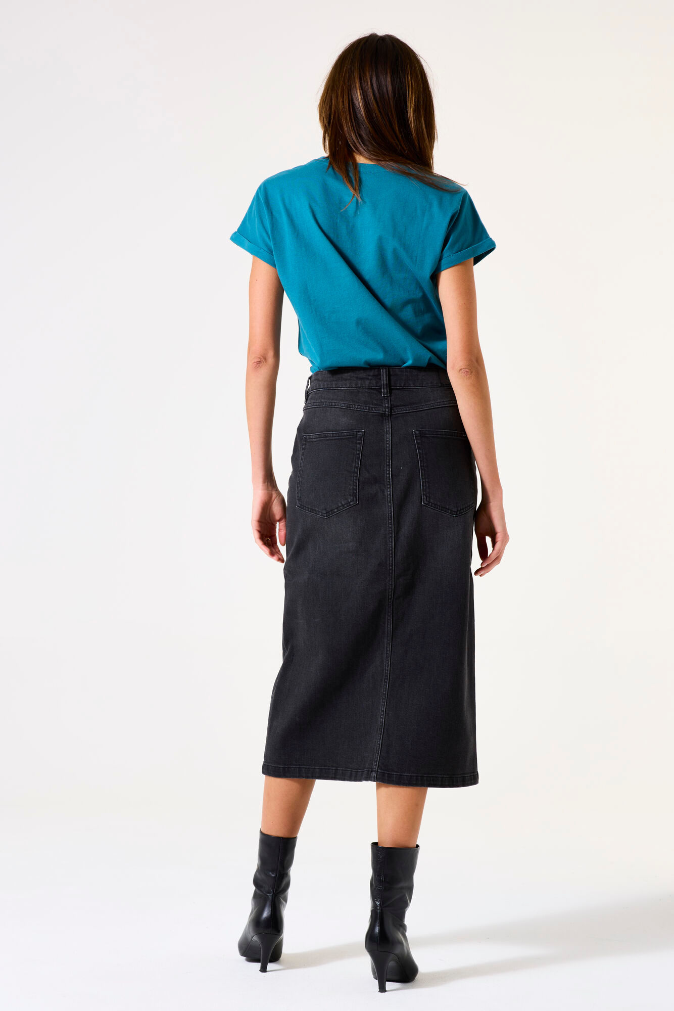 Stijlvolle midi rok met knoopsluiting, perfect voor elke gelegenheid. Deze rok heeft een hoge taille, een knoopsluiting aan de voorkant en een slim fit. Dit item is gemaakt van 79% katoen, 20% gerecycled katoen en 1% elastaan.