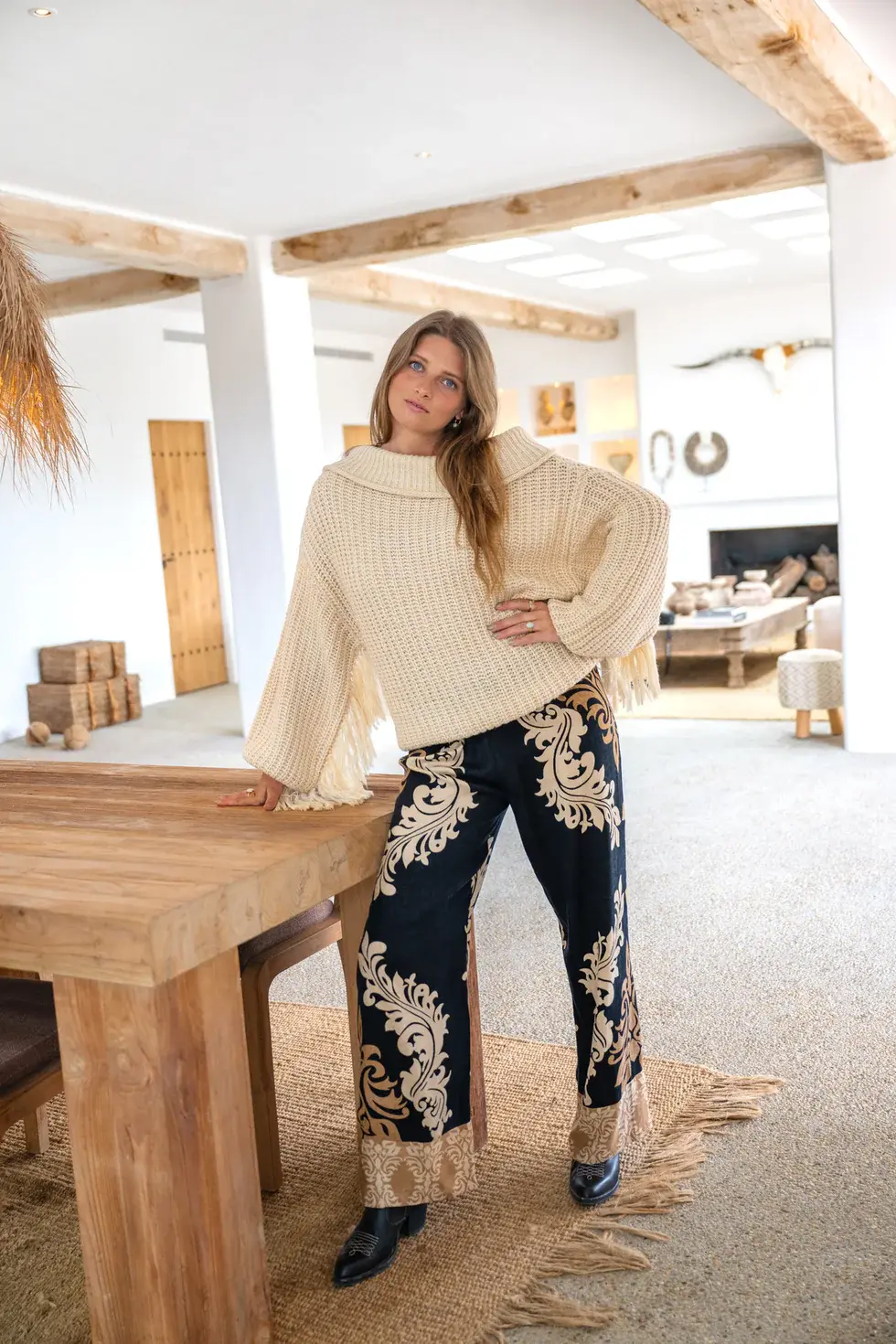 Op zoek naar een trendy en stijlvolle toevoeging aan je herfst/winter garderobe? Kies dan voor de Pantalon Brisa Jaquard Black! Deze elegante broek is perfect voor zowel casual als formele gelegenheden en geeft je outfit net dat beetje extra flair. De jacquard stof zorgt voor een luxe uitstraling en het tijdloze zwart maakt het makkelijk te combineren met verschillende tops en schoenen. Een leuk item voor het FW 2025.