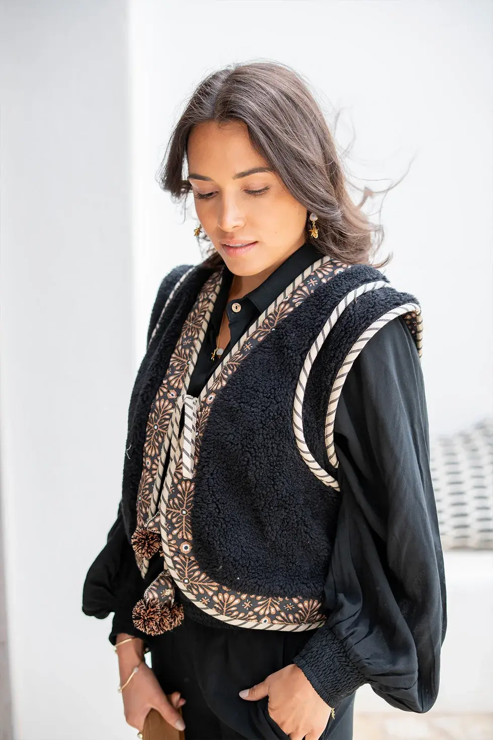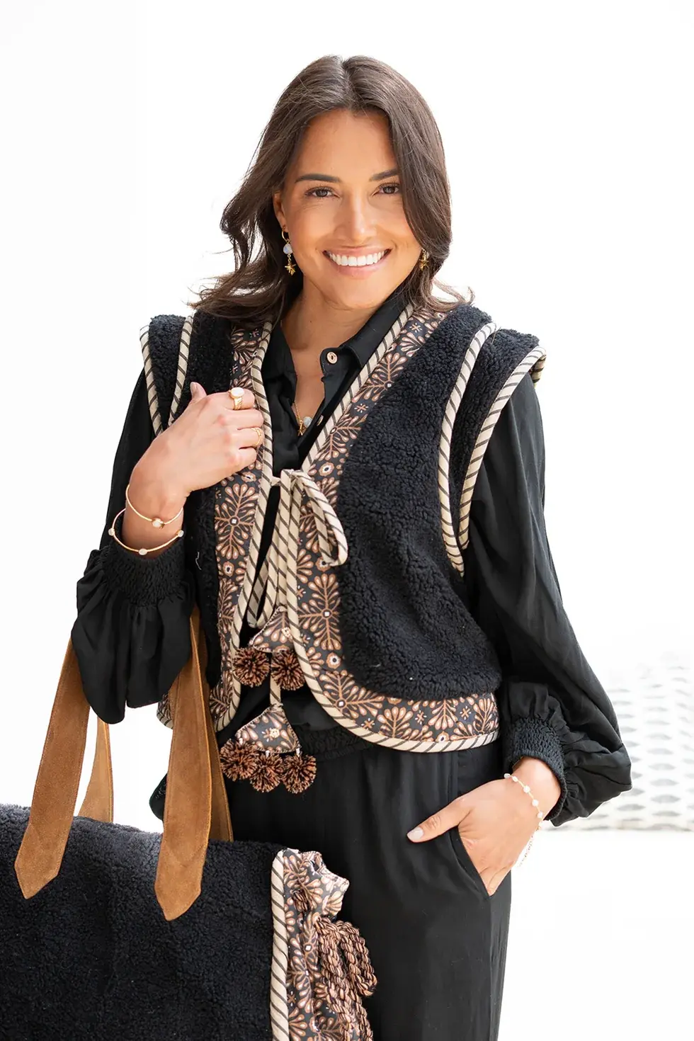 Dit Short Gilet Osito Black gemaakt van hoogwaardig materiaal en met een tijdloos ontwerp zal dit gilet een geweldige toevoeging zijn aan je garderobe. De zwarte kleur zorgt ervoor dat het eenvoudig te combineren is met diverse outfits. Draag het over een trui of blouse voor extra warmte en stijl. Een must-have voor het koude seizoen!