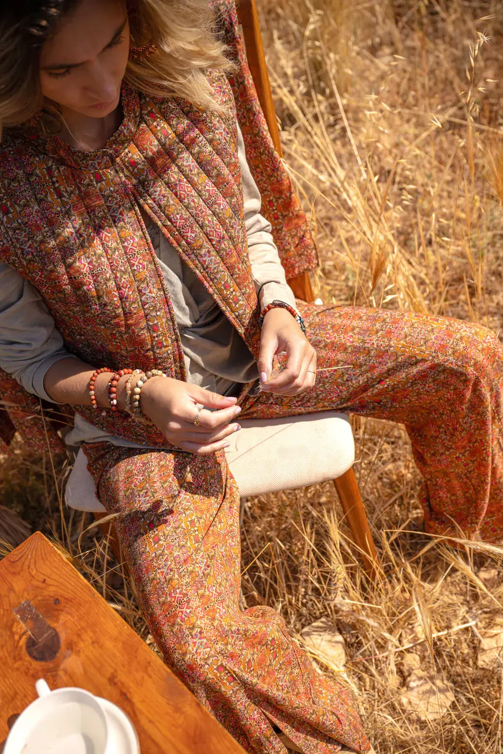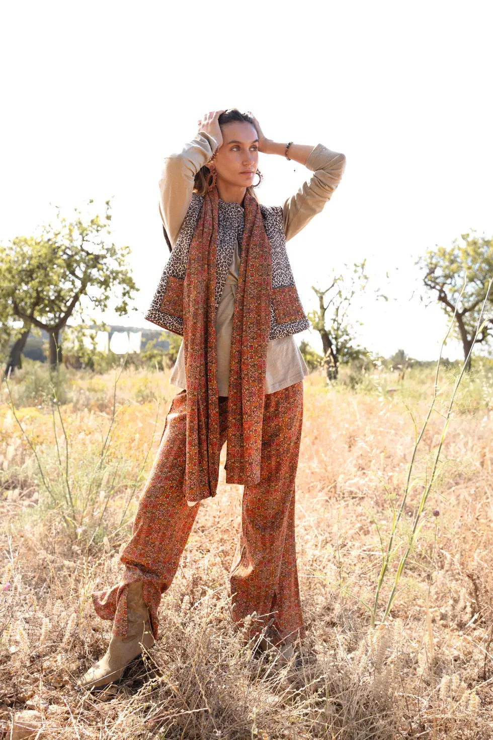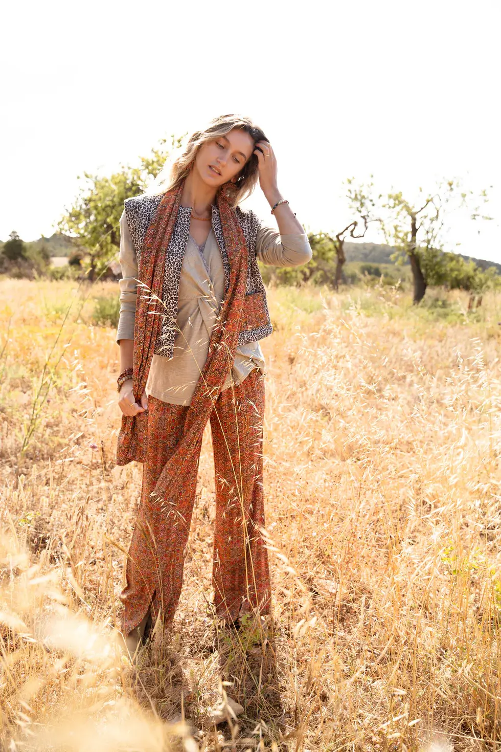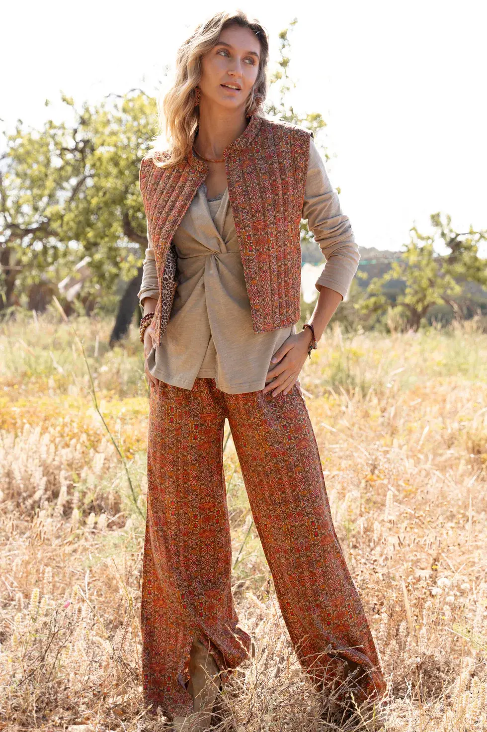 Flared pantalon met print, luchtige en soepel vallende stof, heeft splitten aan de voorkant onderaan de pijpen.