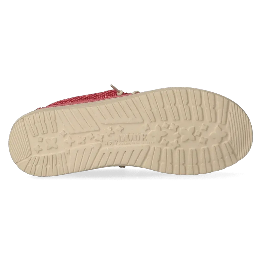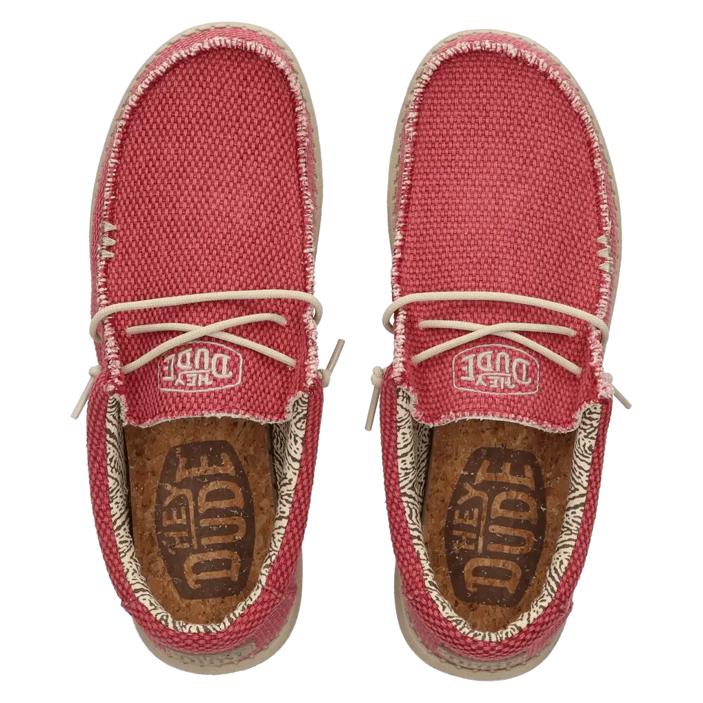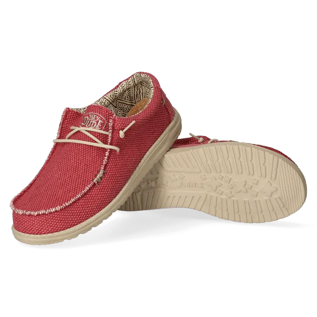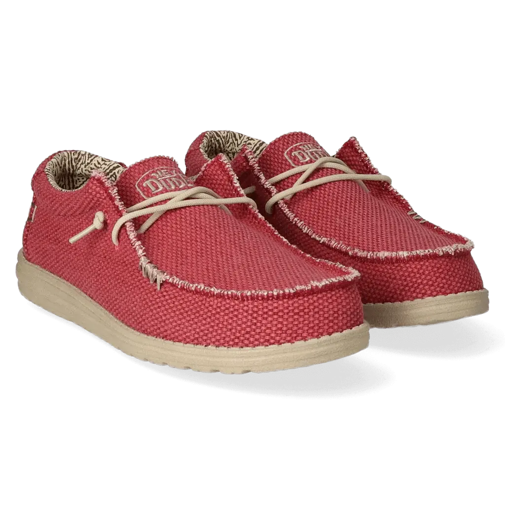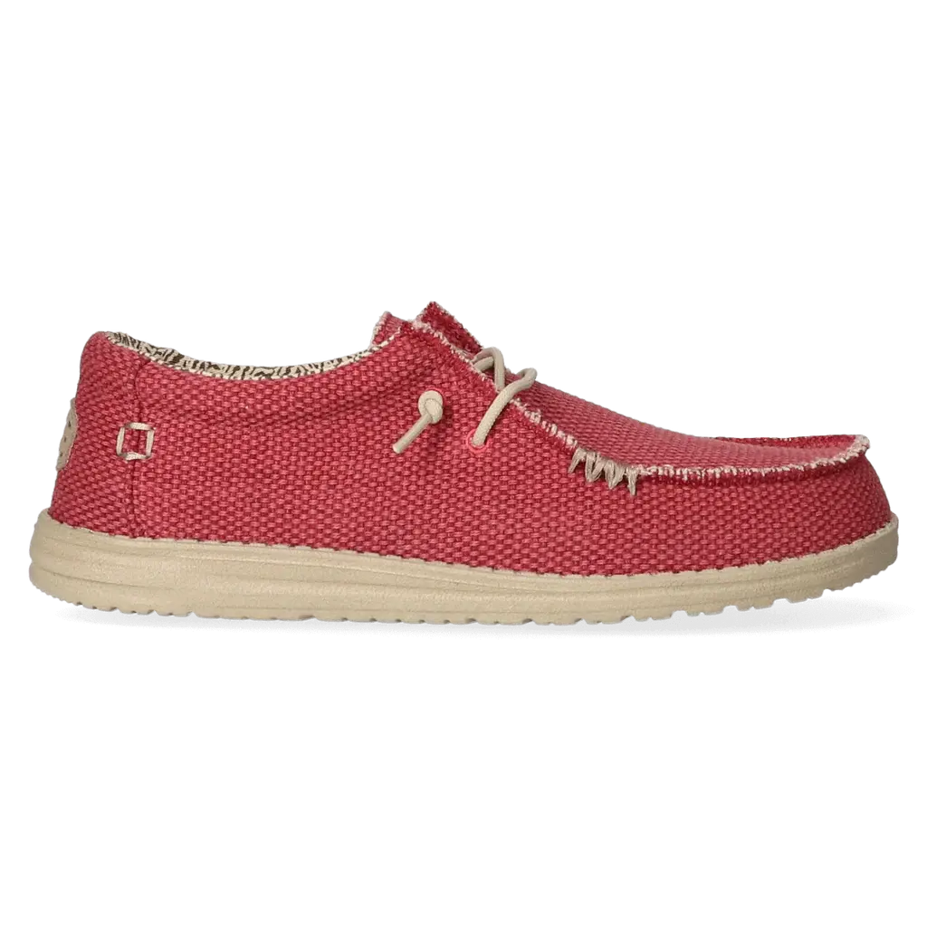 De Wally staat voor een HEYDUDE levensstijl. Een passie voor luchtig draagcomfort, kwaliteit, mode en het echte vakantiegevoel. Onze iconische low-top moc is een evolutie op de klassieke Wallabee. De upper is vervaardigd van ademend biologisch katoen met onafgewerkte randen. Het zorgt voor een stoere used-look. Verdere kenmerken van de schoen zijn de bedrukte voering, het Flex & Fold systeem voor de meest natuurlijke pasvorm en loopcomfort, en de uitneembare met kurk gevoerde traagschuim inlegzool voorzien van antibacteriële eigenschappen. Er is geen gebruik gemaakt van dierlijke producten.